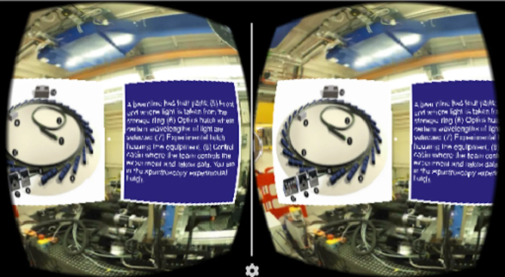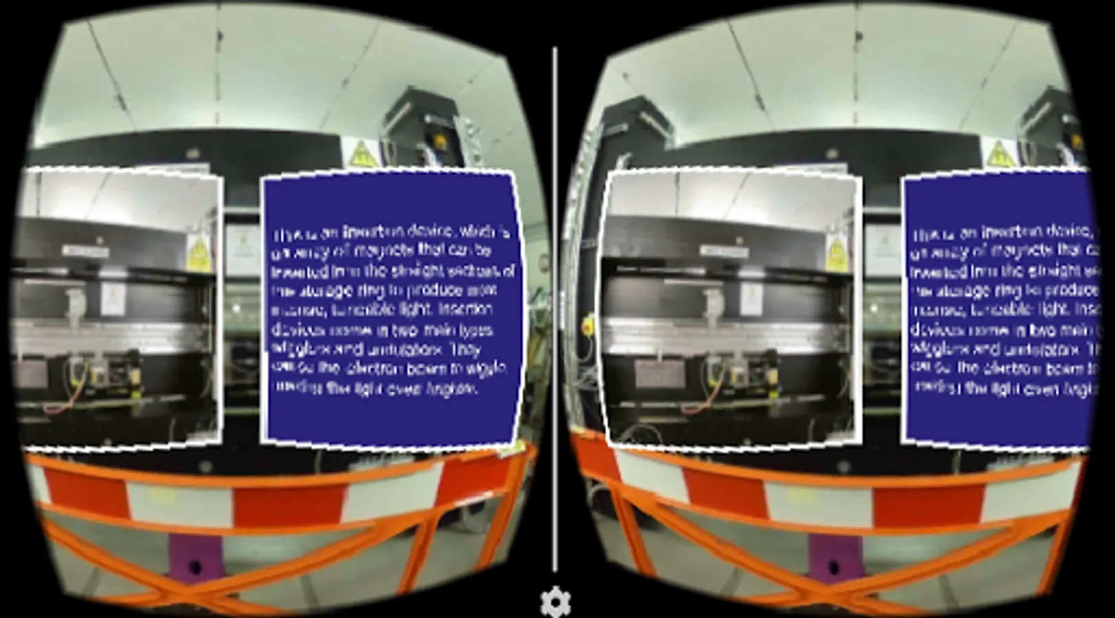 This app allows you to explore the science facility in 360 degree virtual reality using your mobile phone and a VR headset, such as Google Cardboard. Simply load up the app and pop you phone into the headset. Use the button on your headset to click on the green arrows to navigate, or the round buttons to find learn about the equipment and experiments at this science facility.