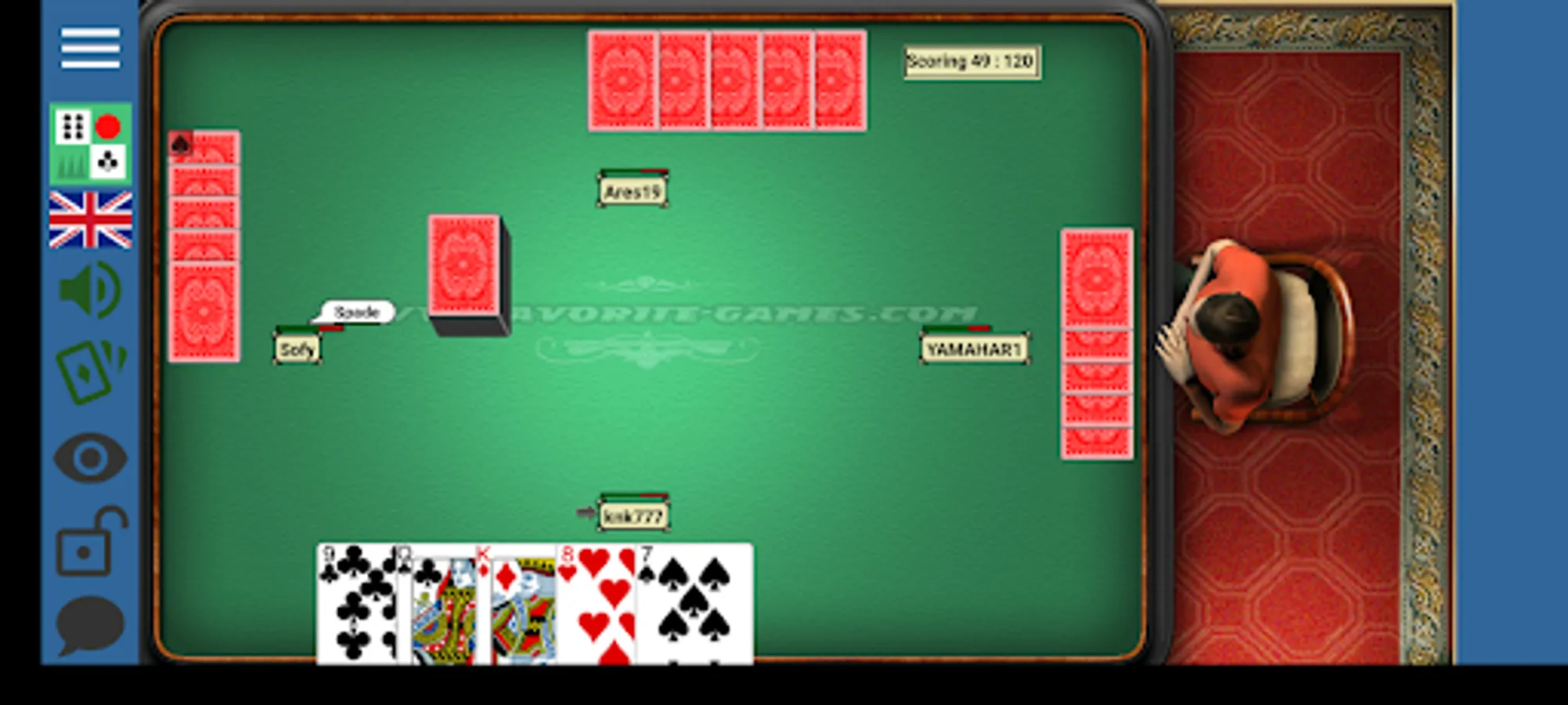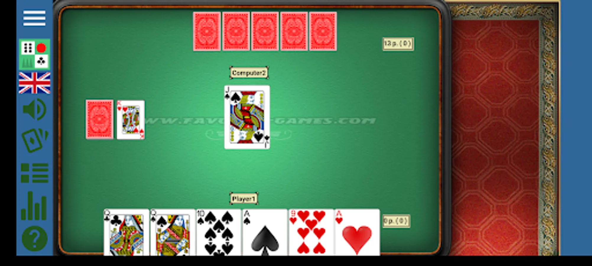 * 9 Games in One Application : Belote, Ludo, Bridge Rubber, Schnapsen (66), Sergeant Major (3-5-8), Backgammon 4 different types