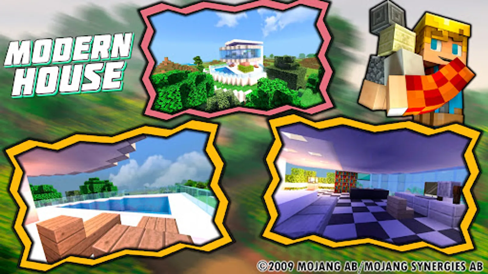 In case this app contains a pixel creation map with a decorated modern house. It is a map of a modern house built on a small hill in an infinite world so you can use it in survival game mode. The house has a room decorated very well as well as a small kitchen and its dining room, the room is suspended in the air and to access it you must use the stairs that are located inside the house.