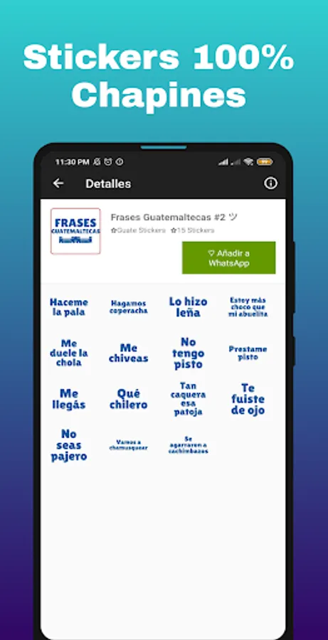 Stickers Guate Stickers is an application to add Stickes Chapines to WhatsApp you can find a large number of designs ready to share with your friends or you can get creative and create your own Stickers .