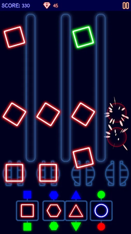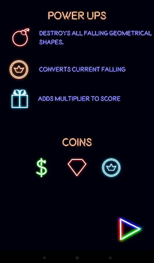 Enjoy a fast shooting 2D game with neon colored themes and multiple geometrical shapes with multiple color diversity.