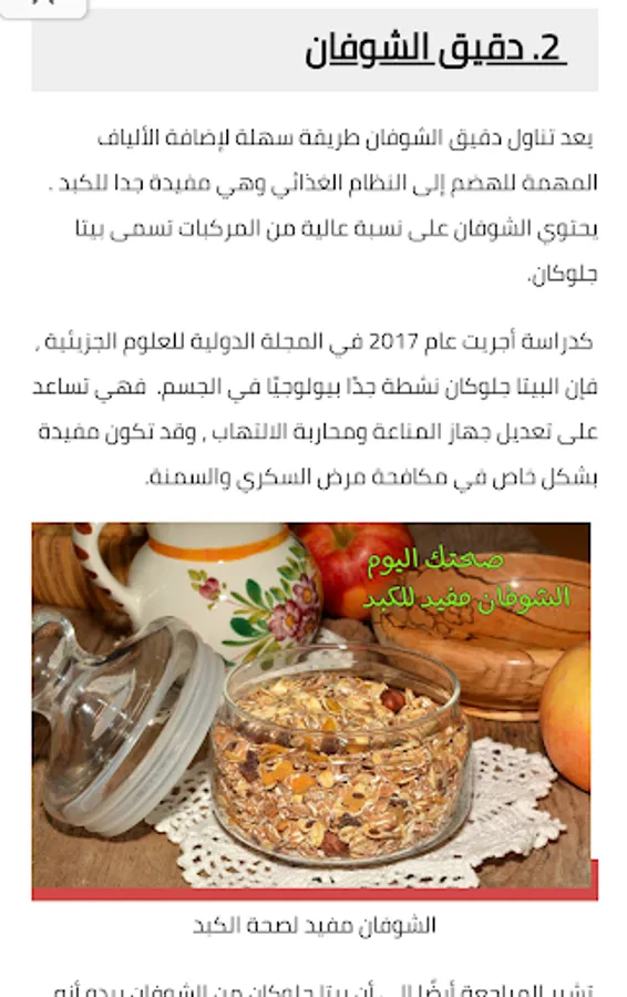 Eating oatmeal is an easy way to add the important fiber for digestion to the diet and is very beneficial for the liver. Oats contain a high content of beta-glucans.