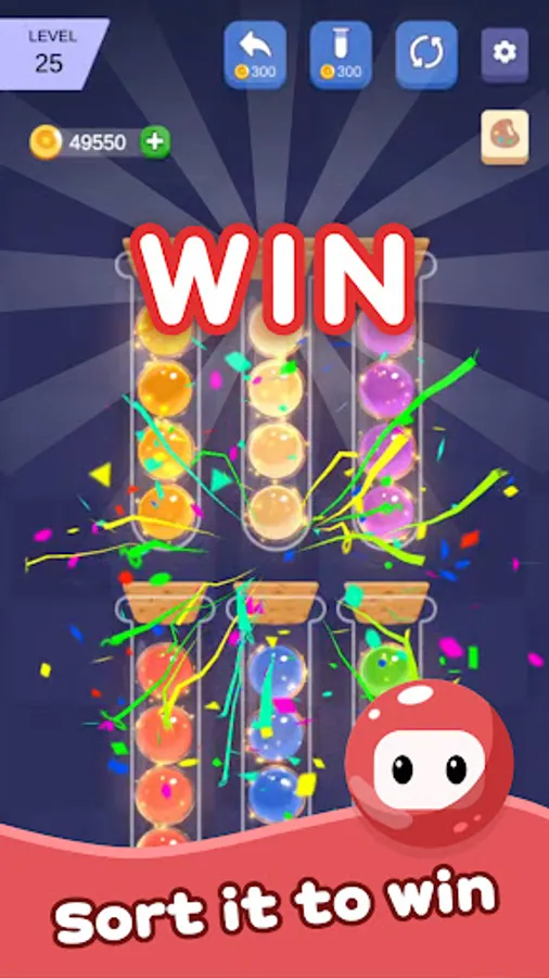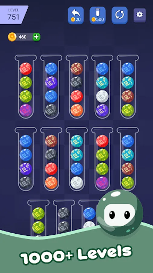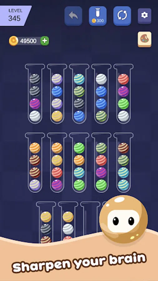 🧠This classic color sorting game is pretty easy to learn, but hard to master. Just tap to take a colored ball from one tube and stack it into another tube, until all balls of the same color are in the same tube. However, there are ten thousands of puzzles of varying difficulty. The more challenging the puzzles you play, the more careful you need to be with each move. Each move cannot be taken lightly, or you may get stuck! This Ball Sort game is definitely the best puzzle game for you to exercise your brain and train your logical thinking.