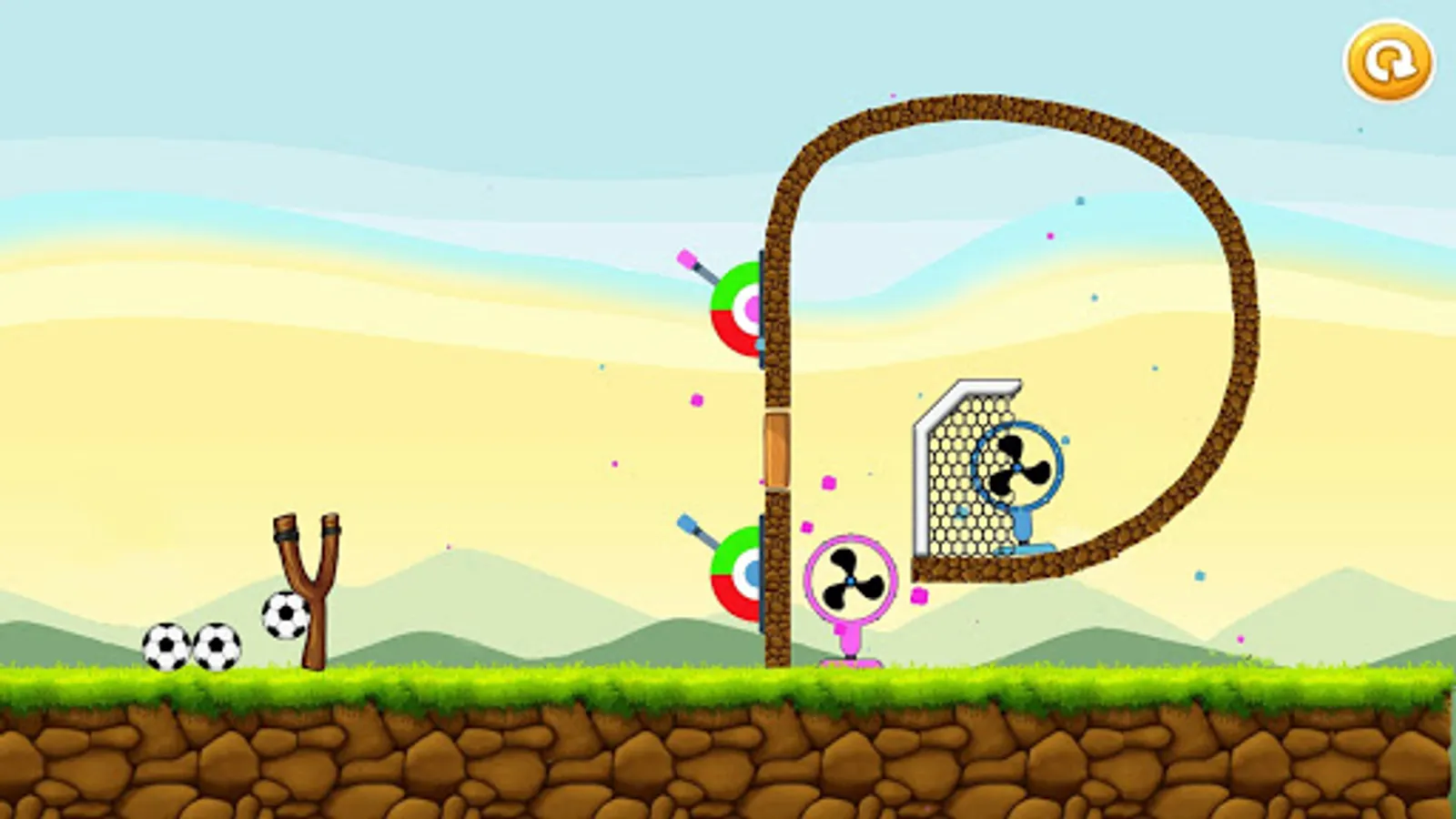 There are many challenging levels in this slingshot shooter game, catapult game, sling soccer game. Each levels are unique and physics based.