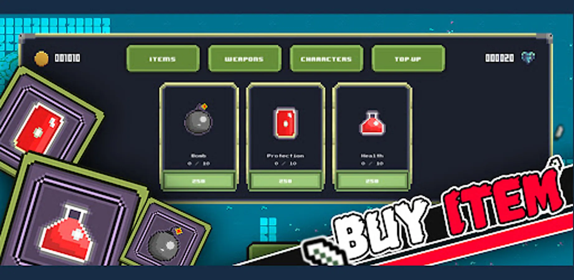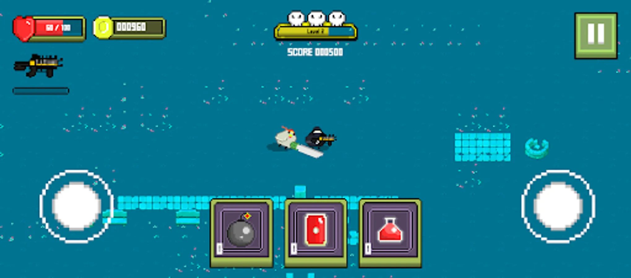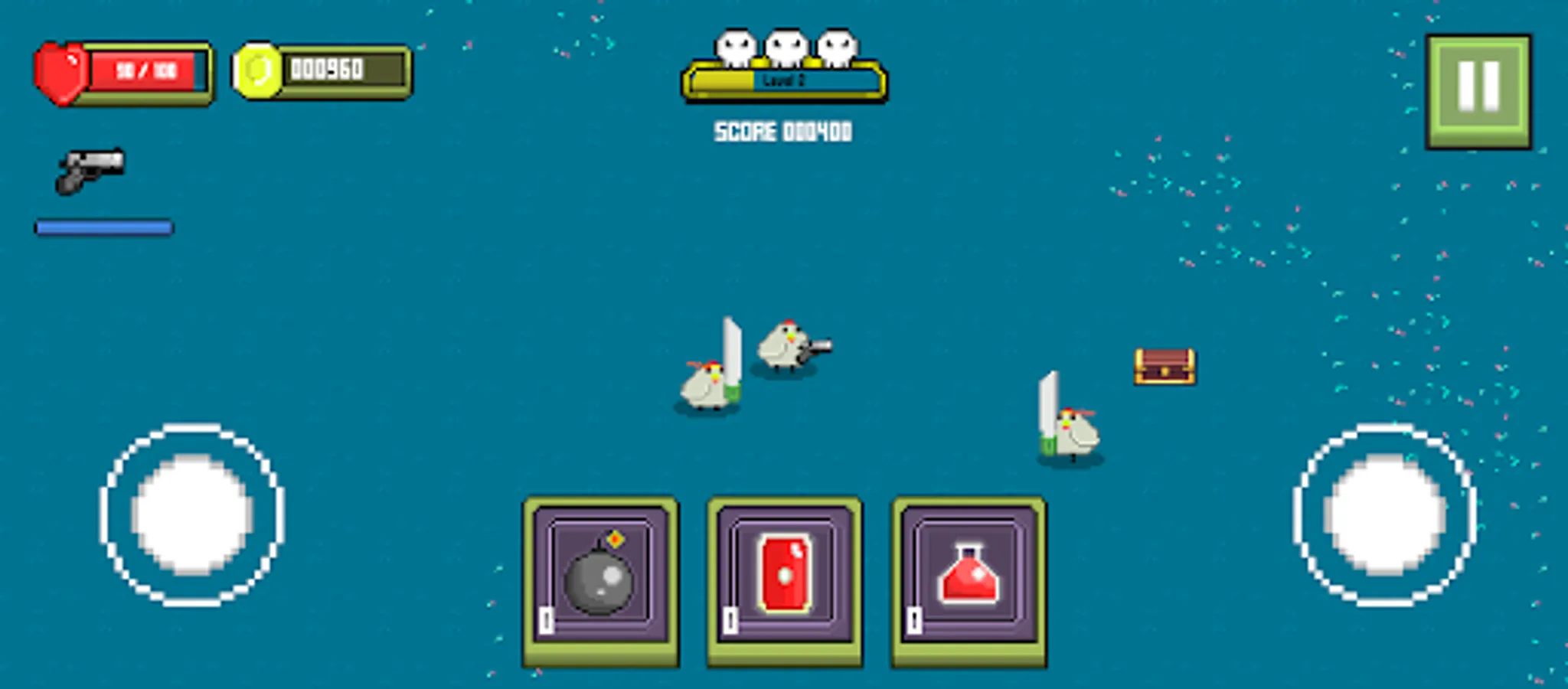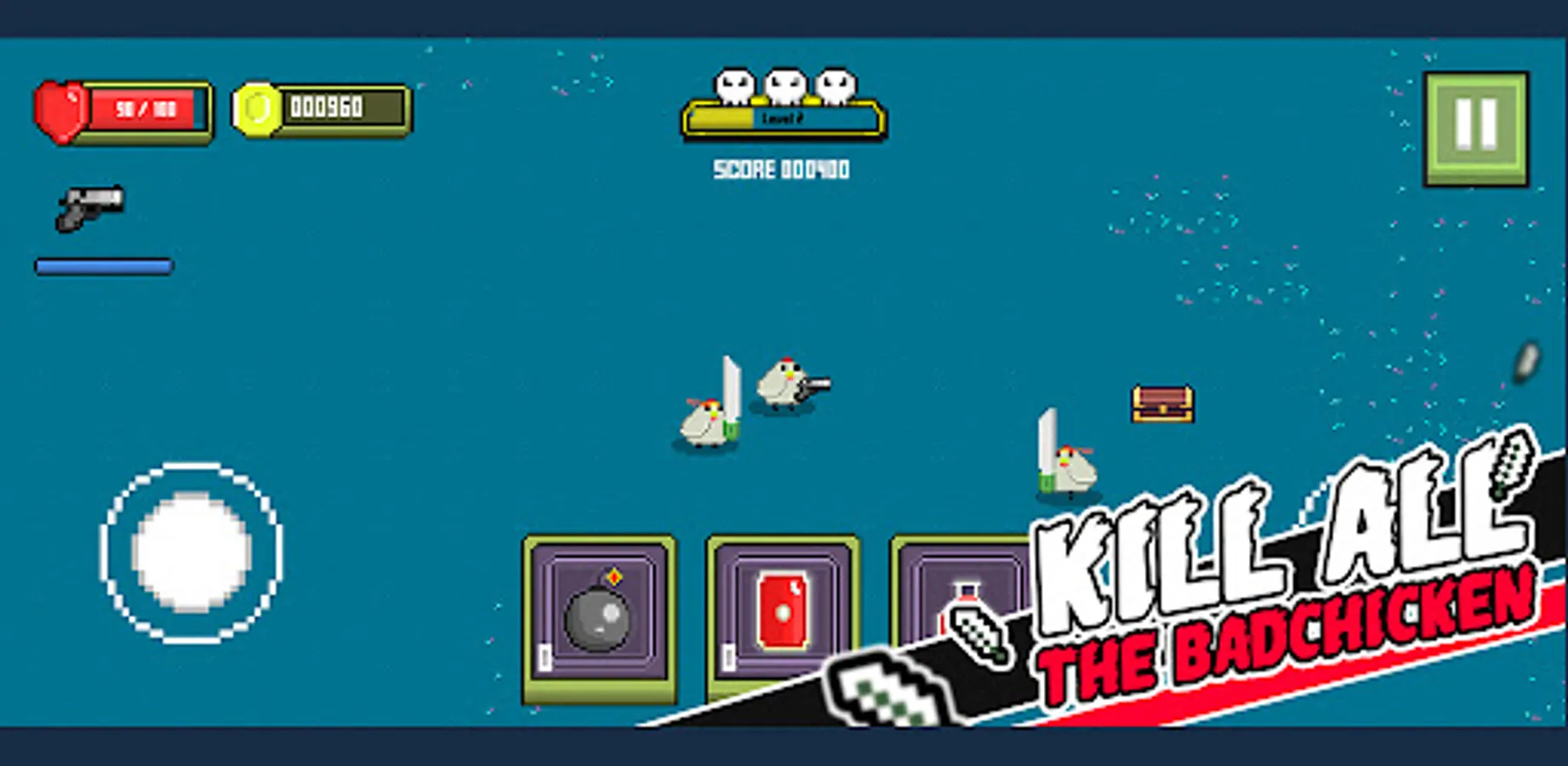 BadChicken is a 2D Top Down Shooter game. The character of this game is a chicken holding a gun, the aim of the chicken is to shoot other chickens that are hostile to him. Defeat all enemies and win scores, levels, medals as much as possible. Buy items in the shop to make the game easier. There are many items, weapons, and characters in this game that you can buy. And also can top-up.
