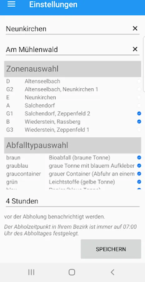 If you select the place and the street in which you live, the app reminds you at a set time to put the garbage can on the street.