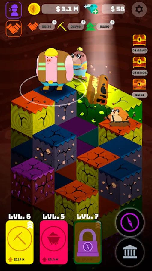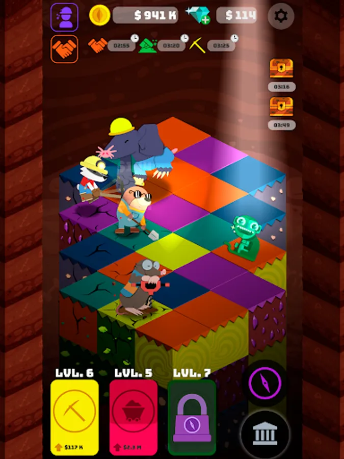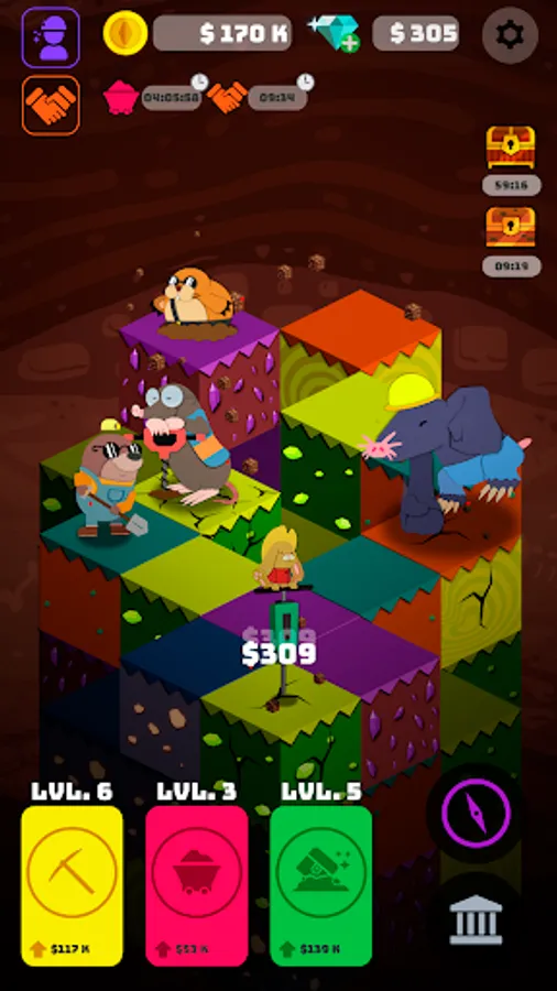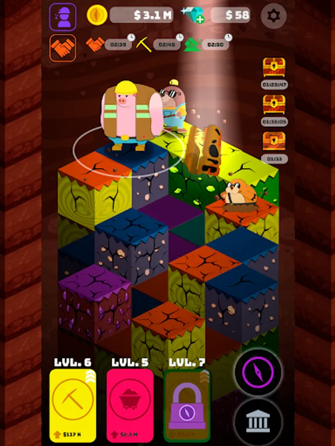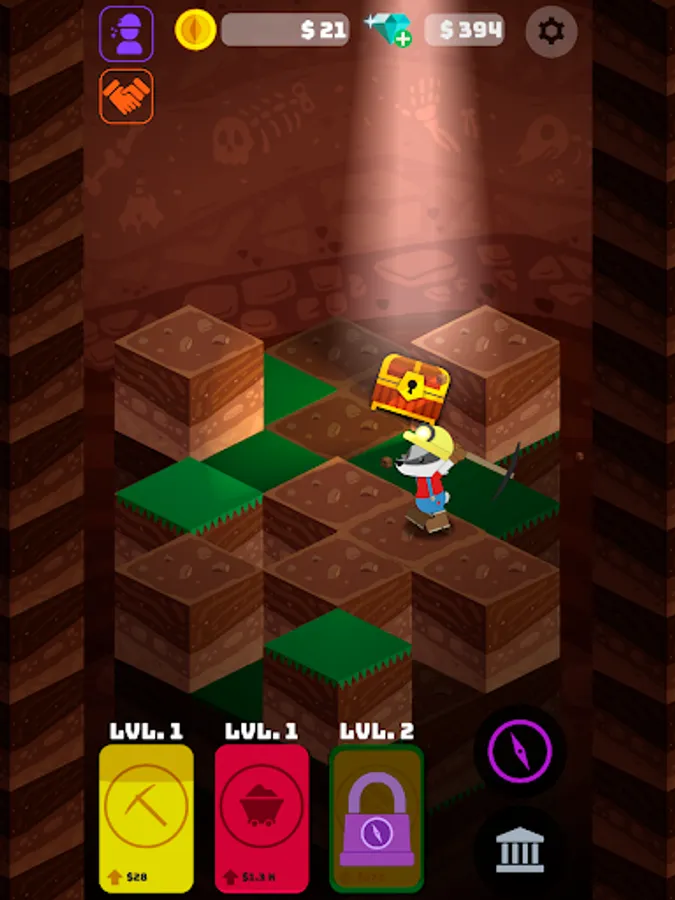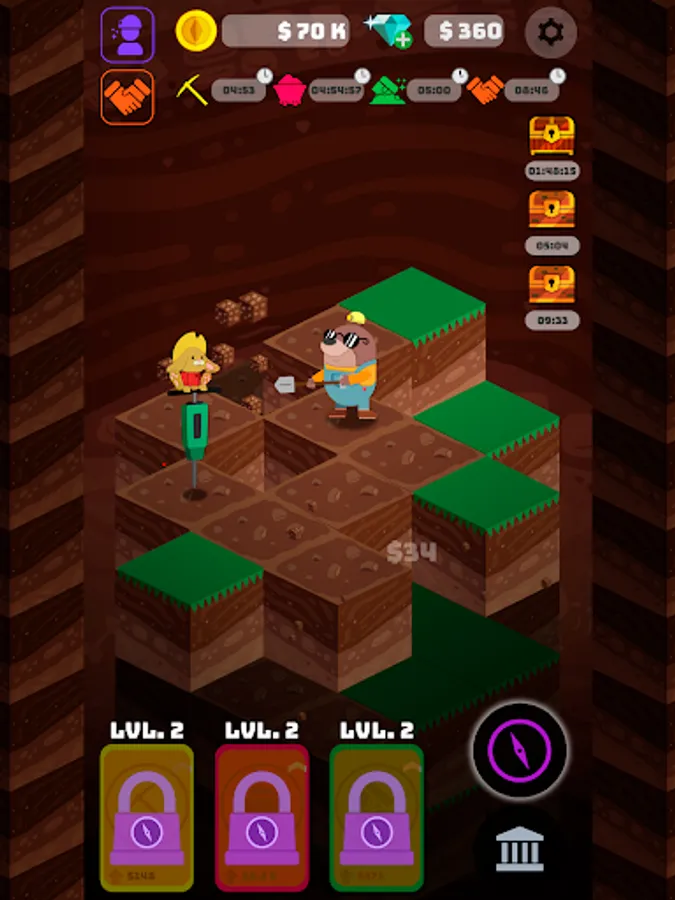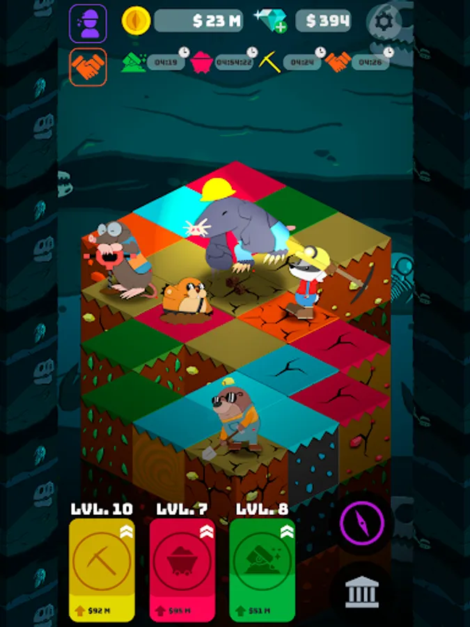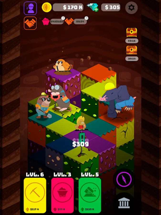 Partner with a mini Badger, and go through the gold mine, find diamonds, silver or even treasure chests in these caves.