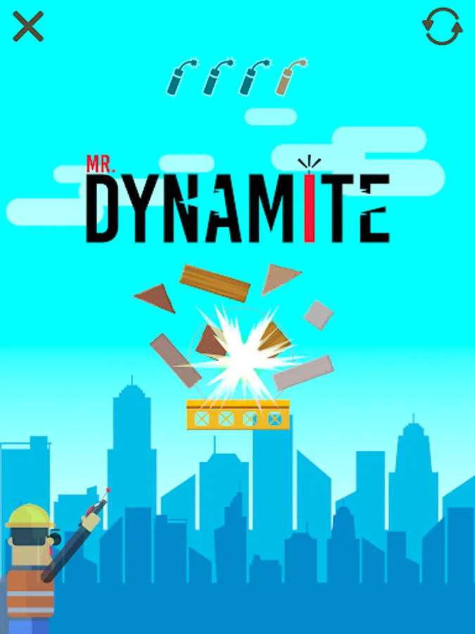 Mister Dynamite is here to demolish everything on the way; use his detonator it is filled with TNT, bombs, fireworks and many more destroyer things!