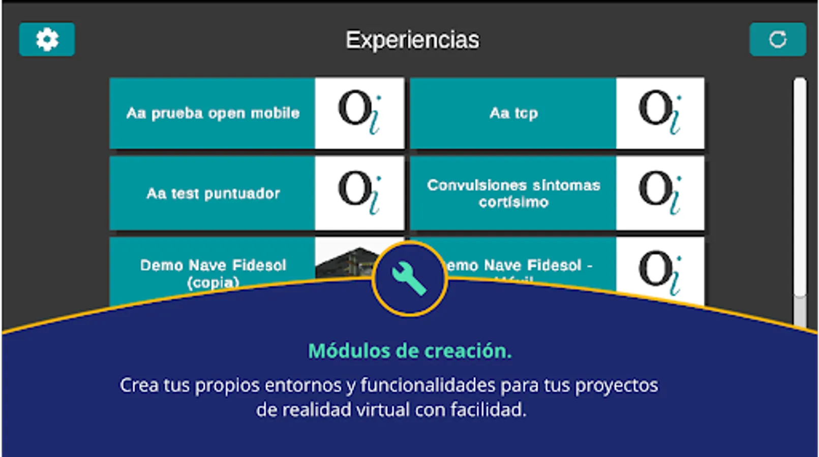 Tablet application for the execution of training and training experiences carried out through the Creame platform.
