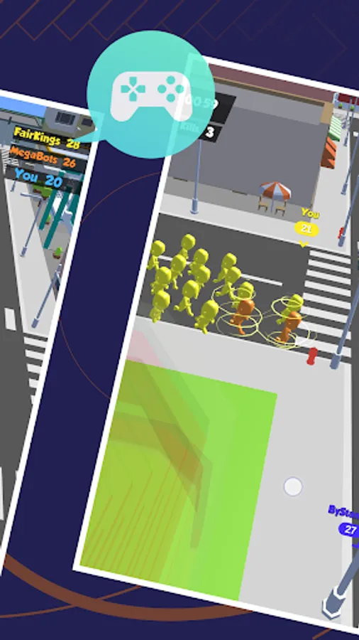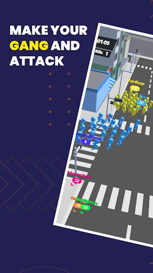 Become the crowd master of the city and command the race of the 3D mob that is biggest in the city.