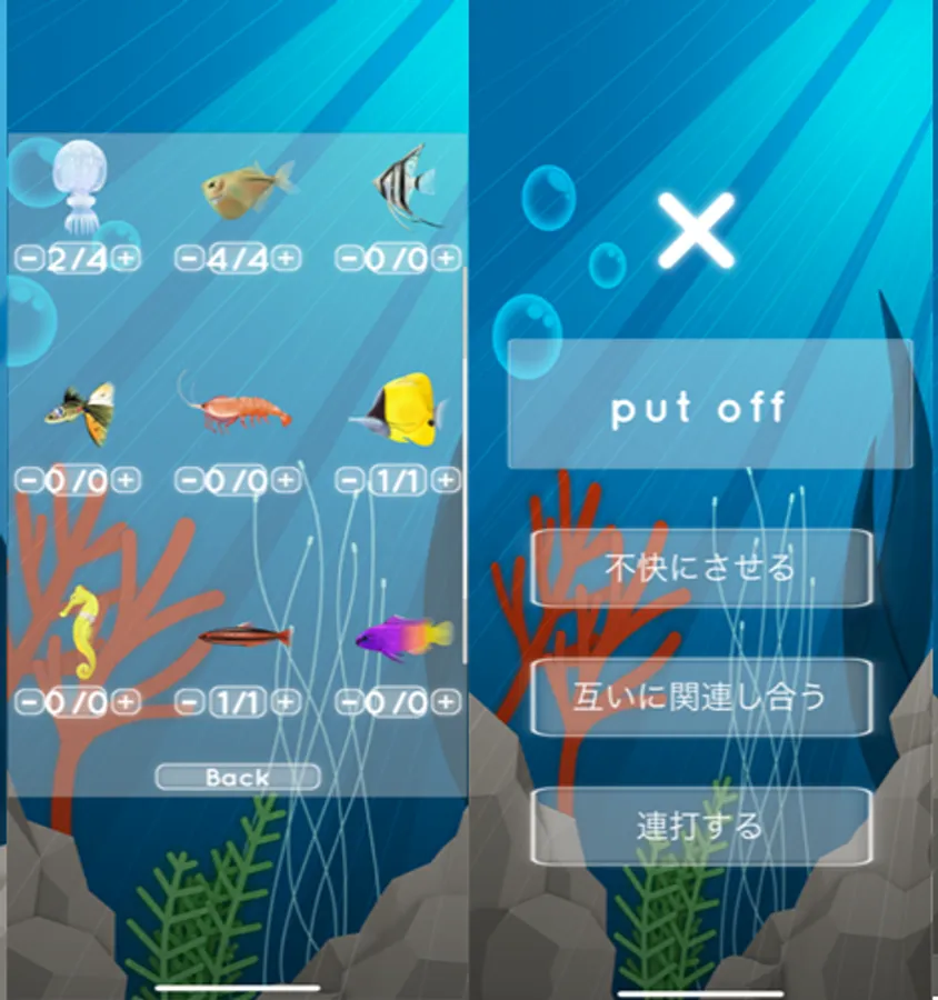 Fishy Fishy 2 is a Fishy Fishy development team (Leader: Daiiel de Luca, Nadia Groenwald, Makuba: Daniel de Luca, Nadia Groenwald, Sakaguchi Eri, Tomoko Ohi, Moe Awa wara, Shoichi Furuichi) belonging to the Furuichi laboratory, It is a serious game that was designed and developed. You can greatly improve the design of the previous work Fishy Fishy! And acquire fish randomly. Also, because they gave physical strength to the fish, they can feed with FP (Fish Point, a point that can be used to purchase fish and baits in a game obtained by learning), and when the physical strength becomes zero, the fish dies I will. We use WordEngine provided by Lexxica Co., Ltd. to use the English teaching material you use, contents automatically adapted to the learner's English level are automatically used. Therefore, since the vocabulary is equipped with the difficulty level that native speakers themselves can learn, even if you learn for a long time, the content for learning is rarely lost.