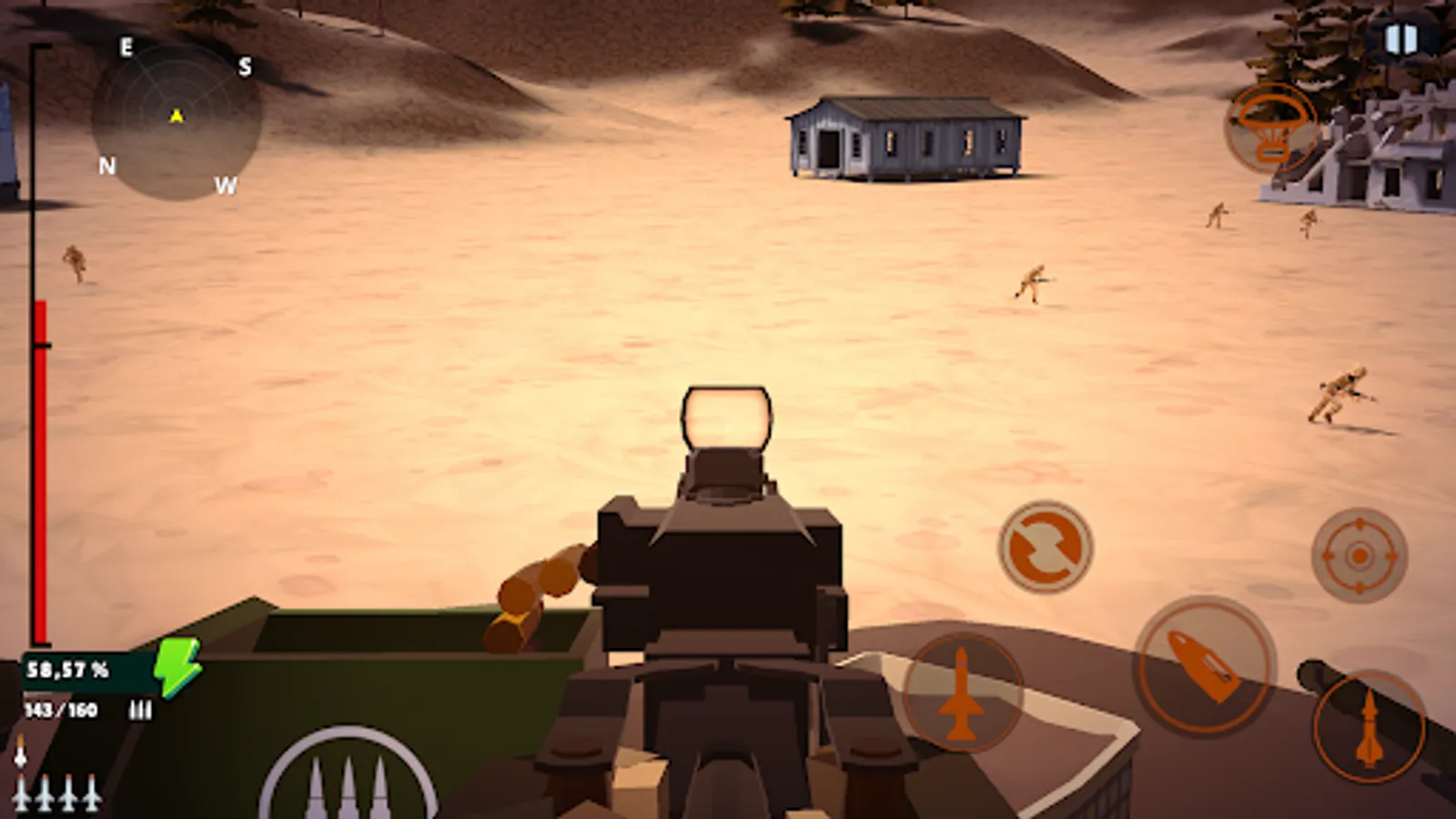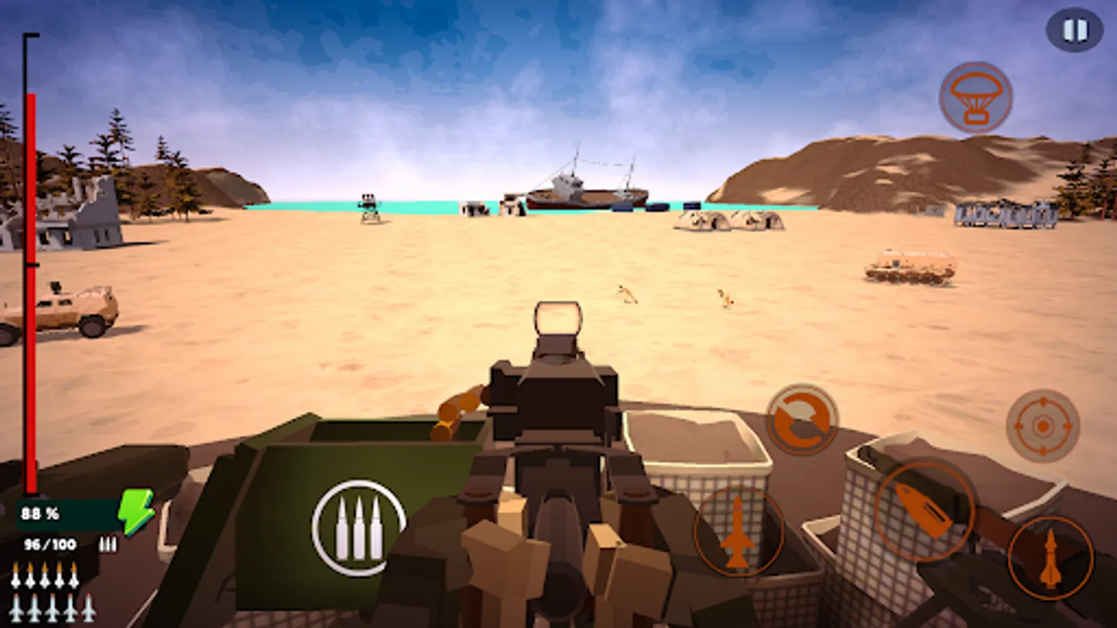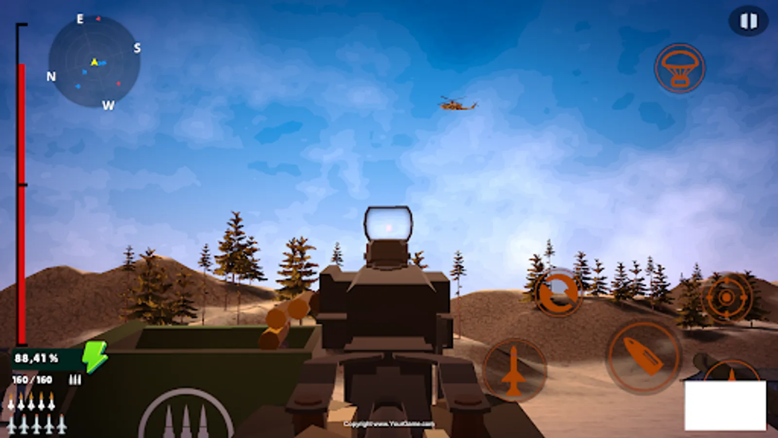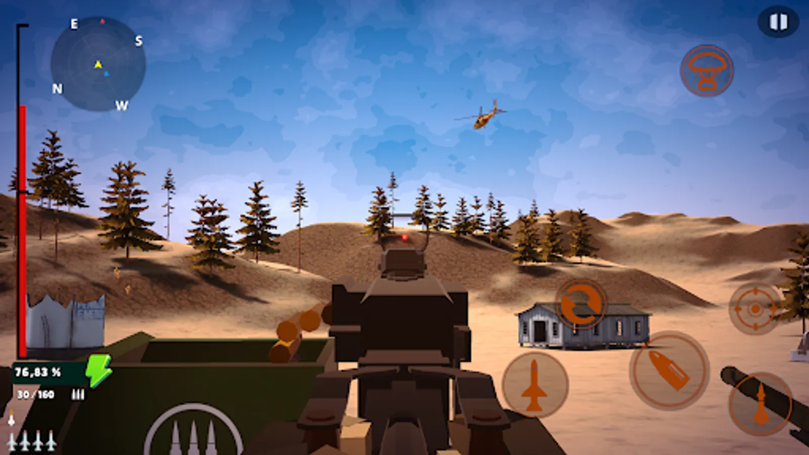 Besides your heavy machine gun, you also have access to a rocket launcher and ground-to-air missile launcher.