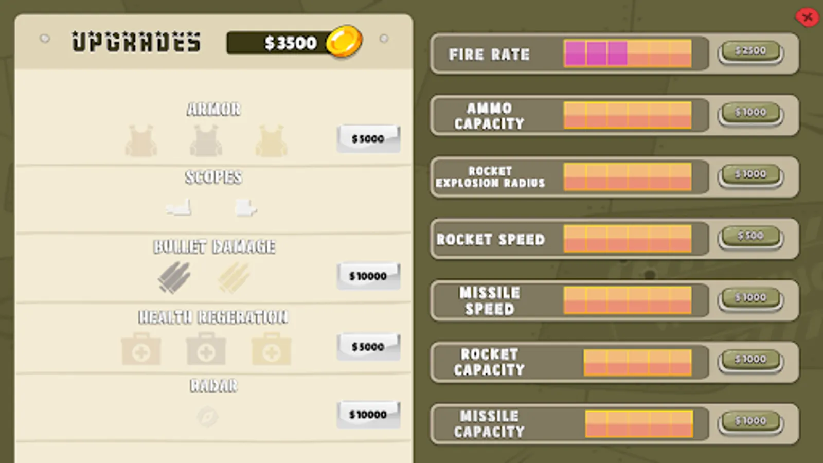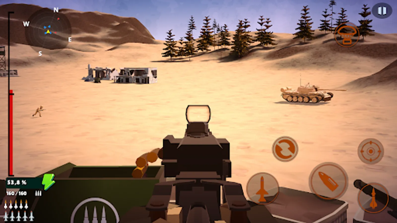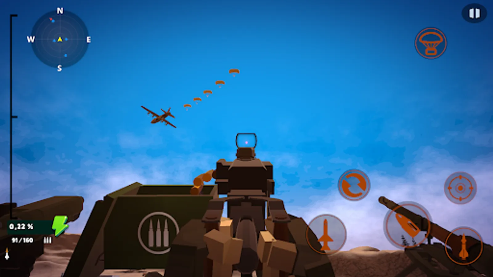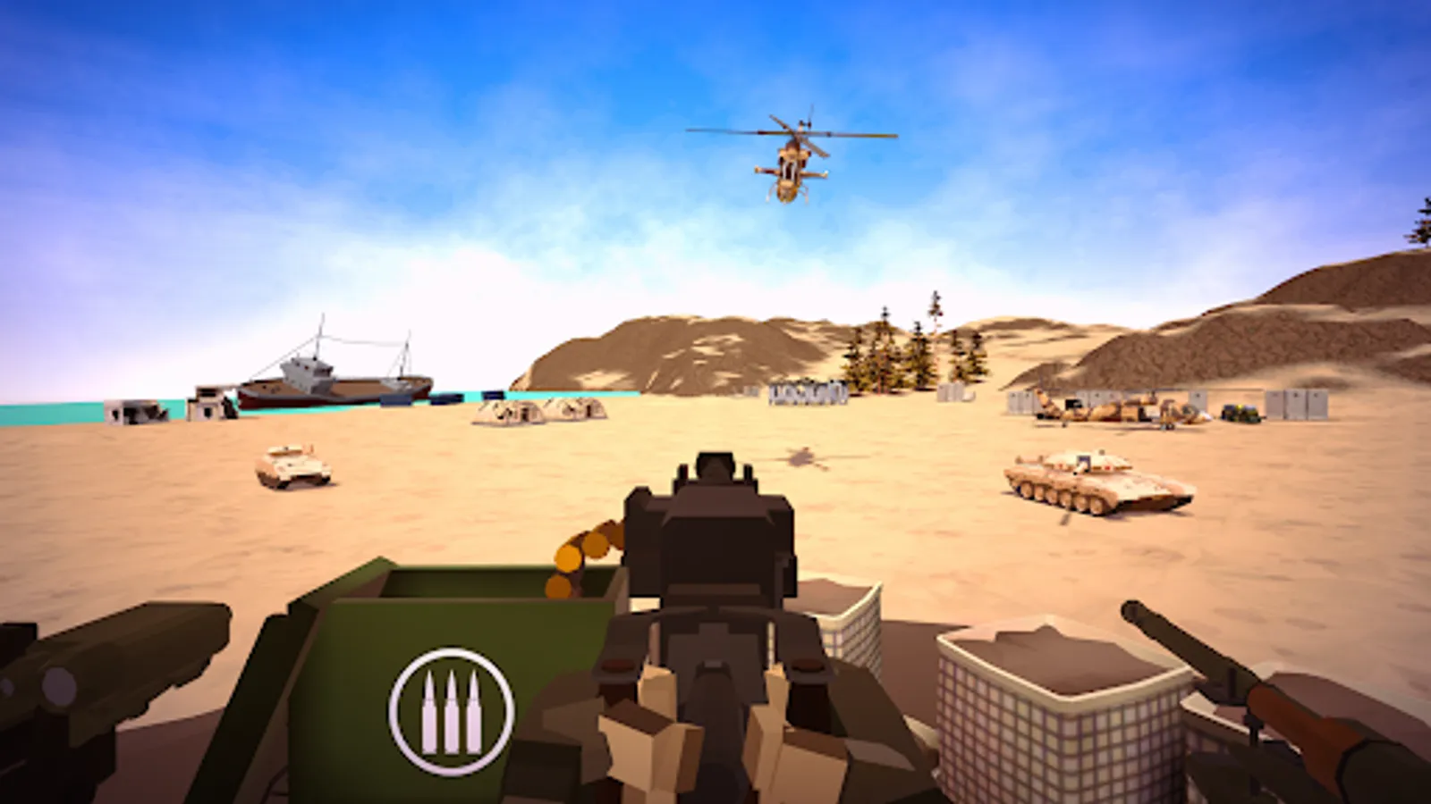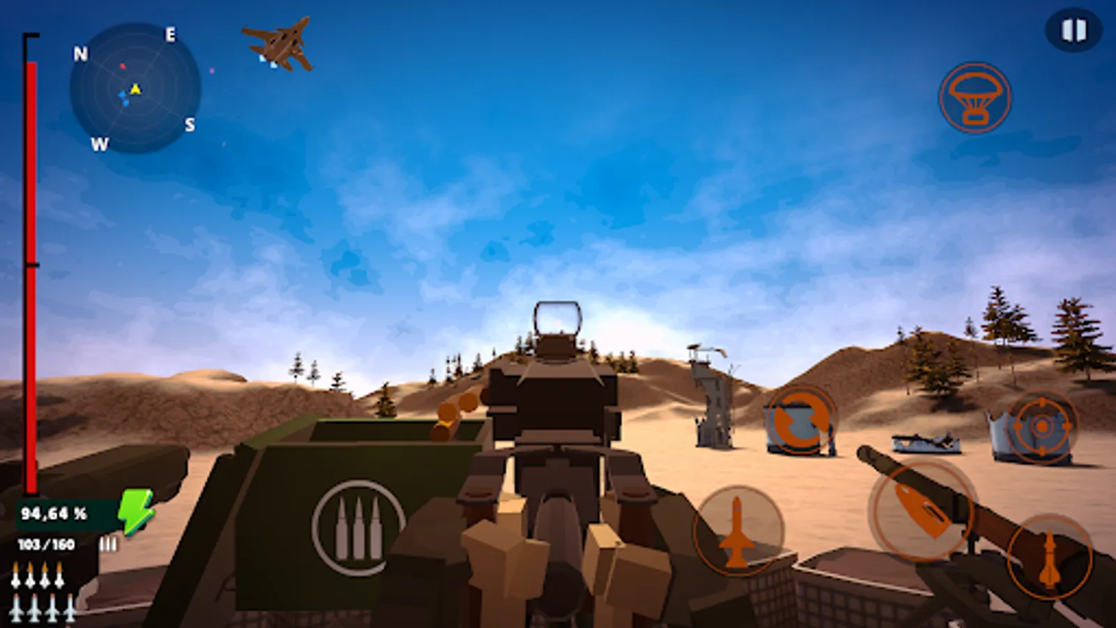 Besides your heavy machine gun, you also have access to a rocket launcher and ground-to-air missile launcher.