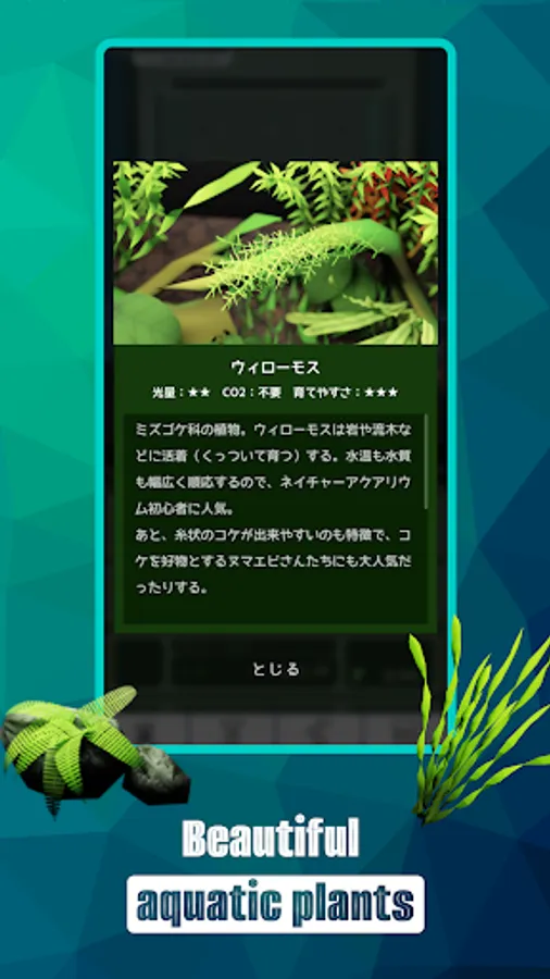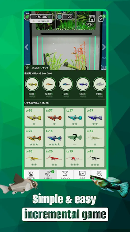 This game is very simple "Incremental" game! Grow aquatic plants and let them photosynthesize a lot.