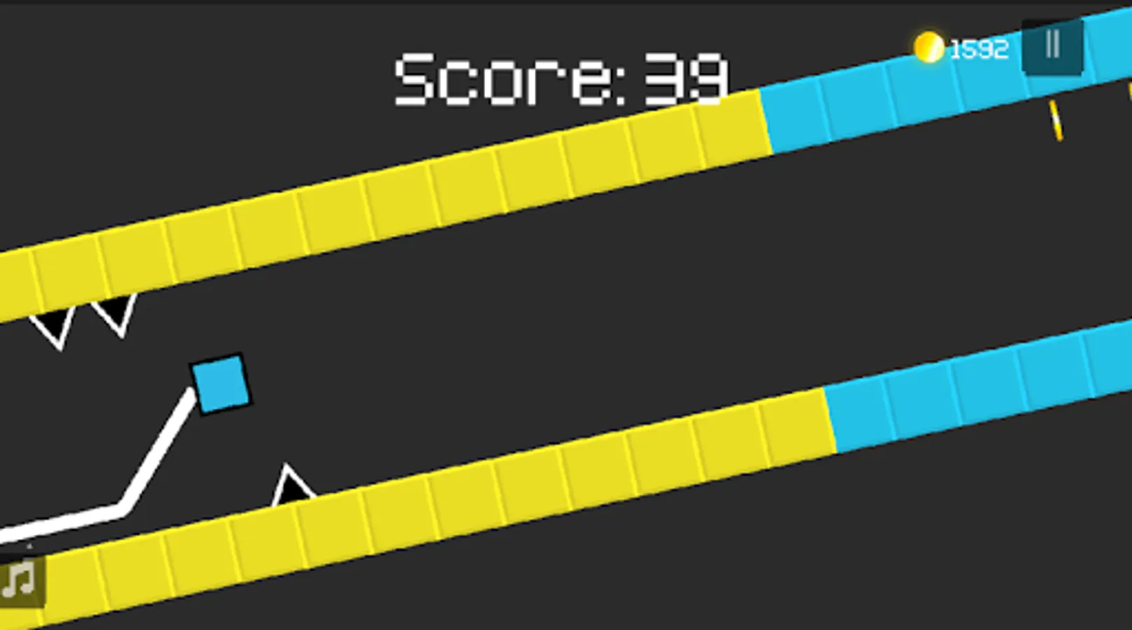 In the World of Gravity Jump there are tons of colors to behold! Score is based off distance so be sure to avoid those spikes.