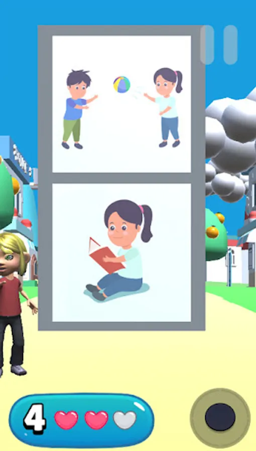Go on a journey in a virtual world through three levels in which you always hear a sentence and answer a question about it. The fourth and final level is a summary level in which all sentences come back again.