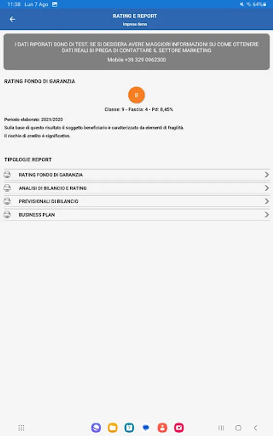Finimpresa Financial Solution is an application that offers in an easy and intuitive way the possibility of viewing on your device, in real time with constant updates 365 days a year, reports relating to the economic and financial health of your company.