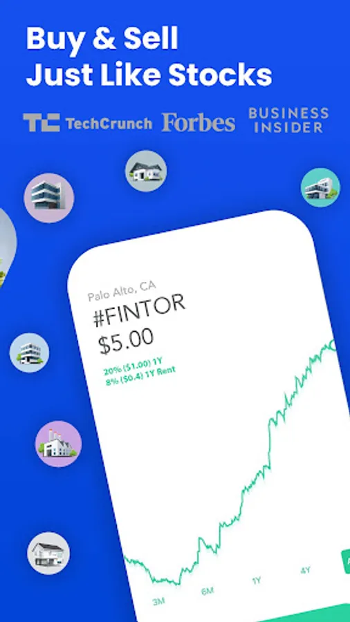 On Fintor, you can easily buy, hold, and sell shares of real estate properties, just like stock.