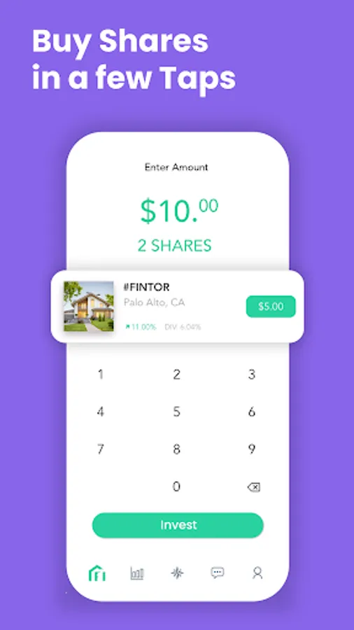 View properties, buy & sell shares with a few taps, and receive monthly income.