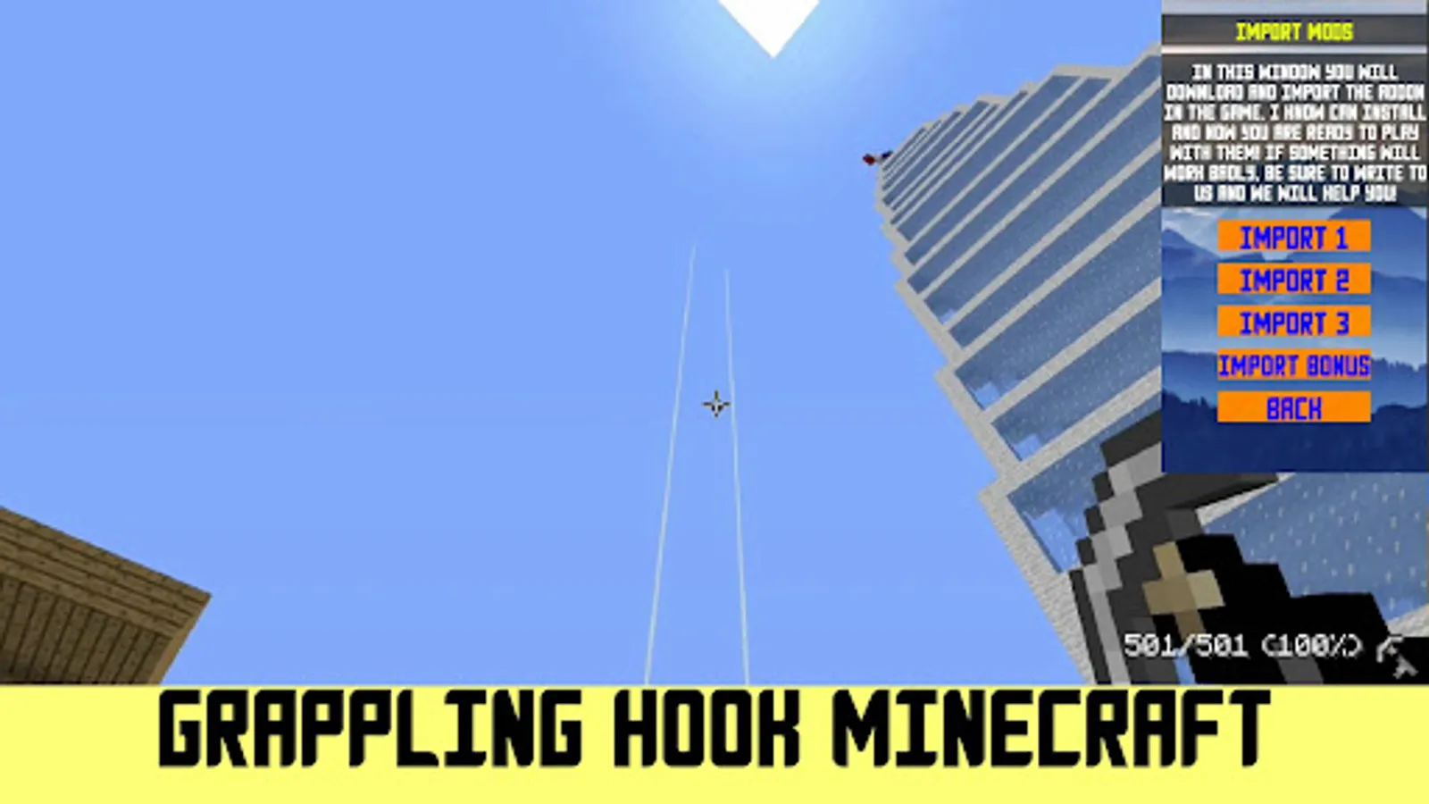 ๐ Grappling Hook Mod for Minecraft PE will add a Grapp Hook to the game that will make your MCPE just amazingly interesting with new textures, monsters, functions and realistic shaders!๐