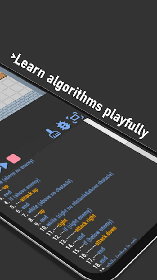 The main tool is the terminal, where the player will write commands in a programming language, the syntax of which is completely based on English. In addition to basic robot movement commands, there are also attack commands to help deal with hostile robots, and "if" and "while" constructs. The “if” construction executes the commands within it only 1 time and only when the condition is satisfied, and the “while” construction is a loop, which means that the commands will be executed until the condition is satisfied. At the same time, an infinite number of conditions can be entered simultaneously inside the structures. To do this, use the special symbol "&", after which you can write the following condition and so you can many times.