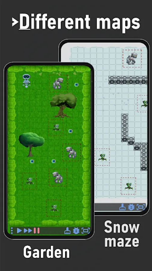 The player will have to control the Win robot using a programming language and go through levels with it, where various obstacles, enemy robots, and various locations await him. There are 14 levels in the game, divided into 3 locations: "Factory", "Garden" and "Snow Maze".