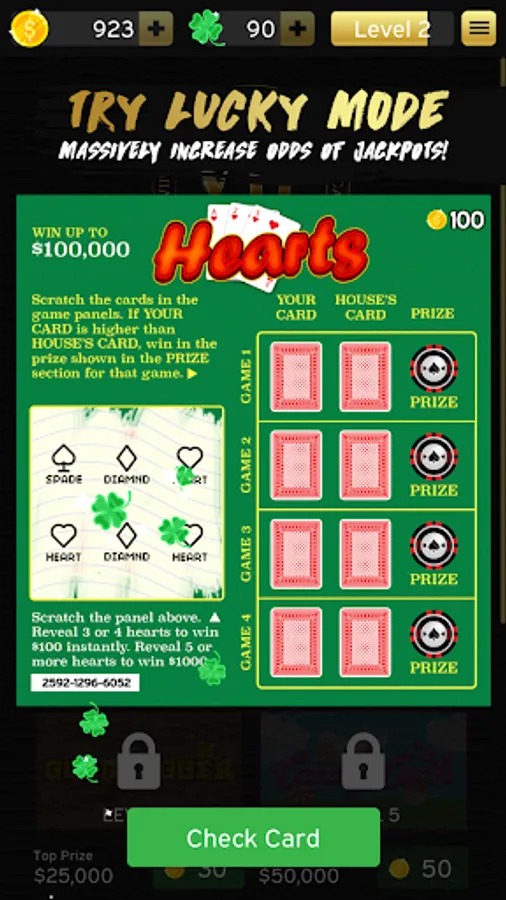 Level up and unlock new scratch cards progressively as you play. Scratch off bonus panels to win bonus money.
