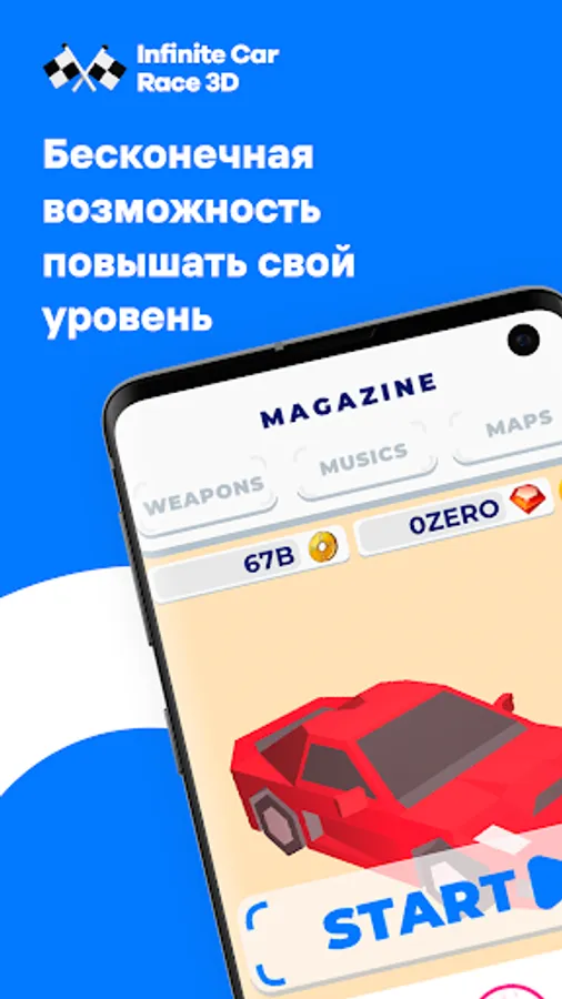 Infinite Car Race 3D - bu yangi qiziqarli cheksiz poyga o'yini. Avtomobilni tanlang, tangalar to'plang, yangi joylarni ochish uchun darajangizni ko'taring, mashinangizni yangilang! Cheksiz poyganing yangi kontseptsiyasi.