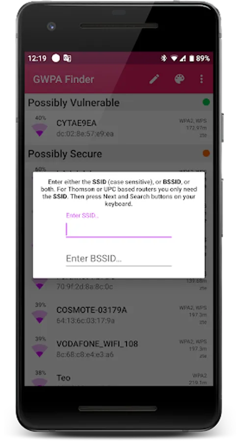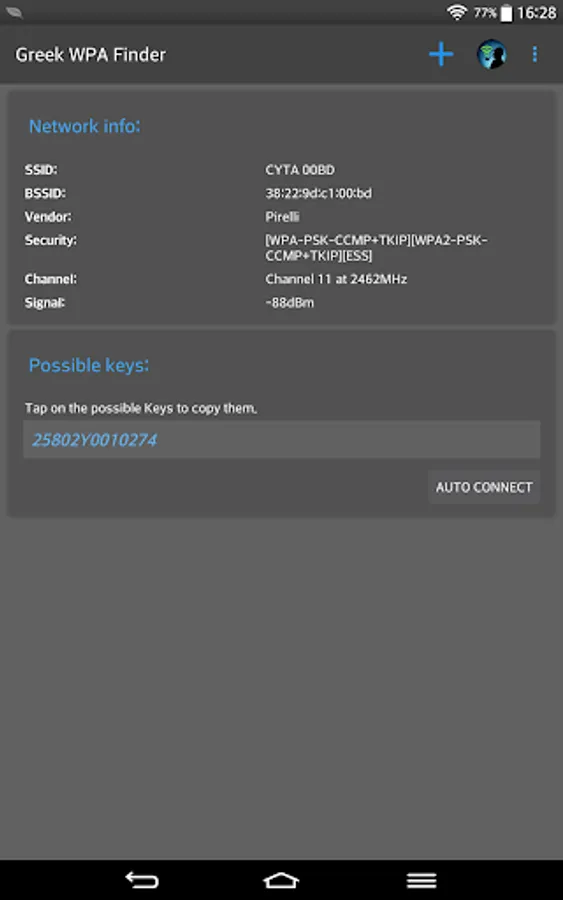 This app (formerly known as Greek WPA Finder) was originally intended for use inside Greece as it can recover default WPA/WPS Keys of specific router brands that are popular within Greece thus helping you test your network security.