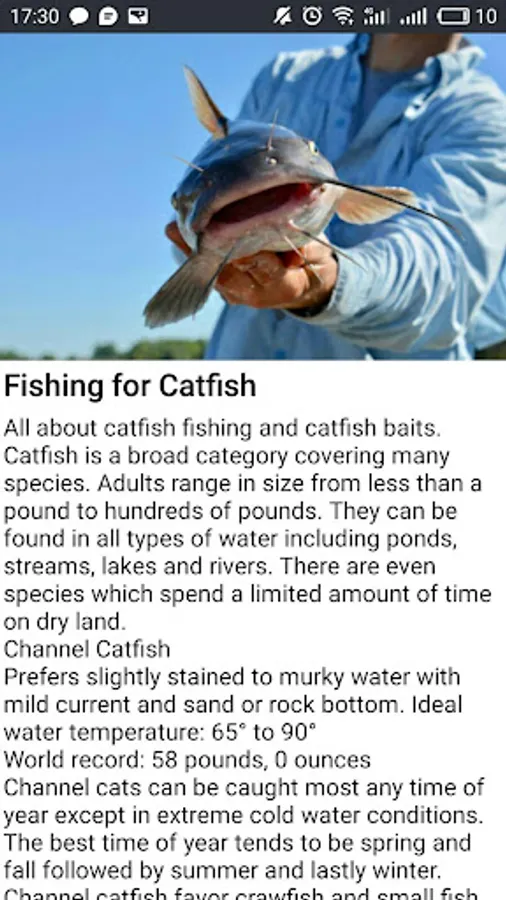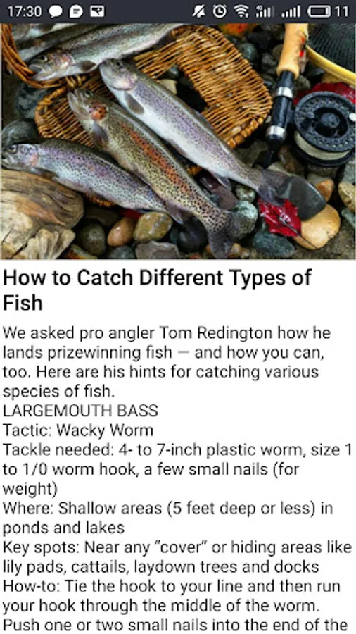 The application contains a list of basic things that a novice fisherman needs, which beginners should know when collecting their equipment and heading for the water. For the fish to be successful, you need to know the most useful basics.