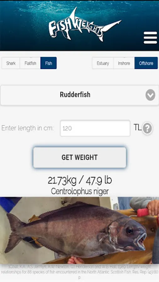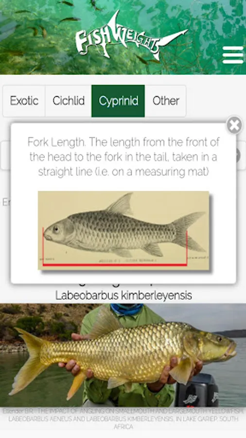 Simply measure your catch, select the species and input the length to get the closest possible estimation of the weight based on years of fisheries research throughout Southern Africa.