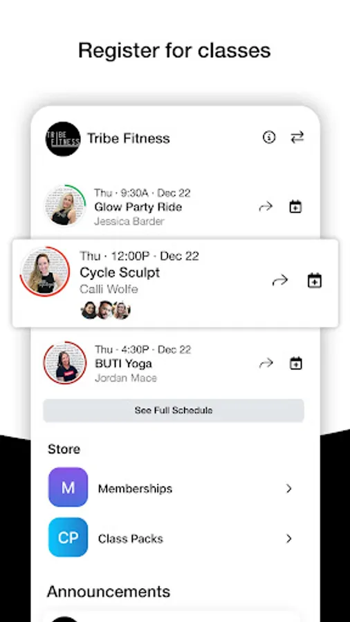 Use this app to book Tribe Fitness, LLC classes, purchase one-time or recurring membership fees, and connect with other Tribe Fitness members.