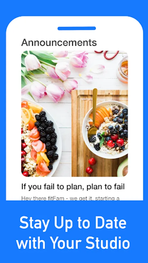 The fitDEGREE Announcement board allows you to see what's going on at your studio. If you allow it you can get push notification messages from your studio on important information and events!