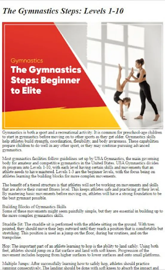 From handstands and walkovers to flips and leaps, this app covers it all. Learn step-by-step progressions, proper form, and common mistakes to avoid. With a focus on building strength, flexibility, and body control, you'll develop the skills needed to perform dazzling floor routines.
