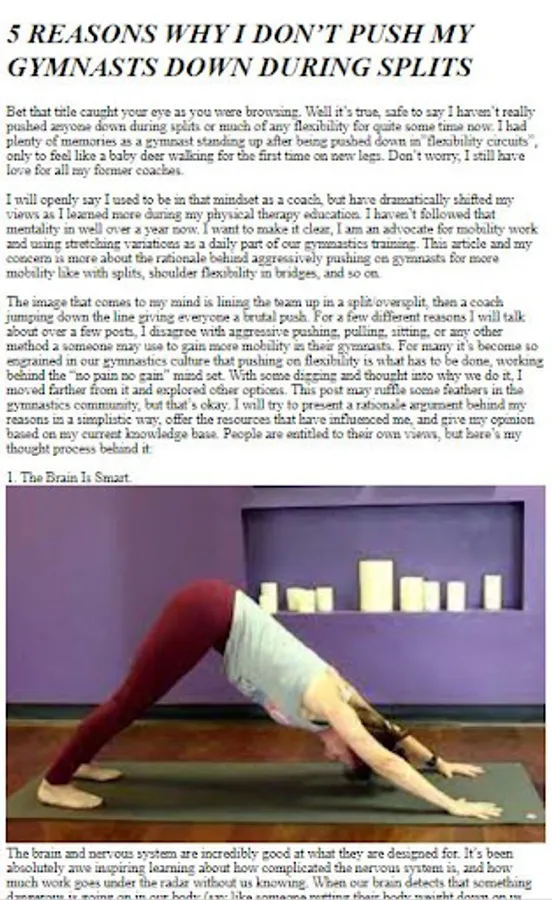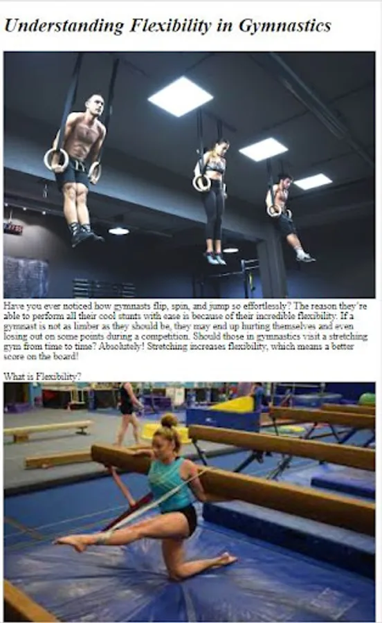 Our app doesn't stop at splits – it offers comprehensive guidance on all aspects of gymnastics flexibility. You'll find exercises and tips to improve your overall flexibility, targeting areas such as backbends, straddles, and more. We believe that a well-rounded approach to flexibility is key to becoming a versatile and accomplished gymnast.