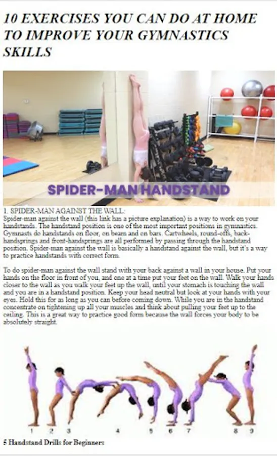 Designed for all skill levels, our app offers a progressive training program that caters to beginners, intermediates, and advanced gymnasts. Each exercise is demonstrated through detailed video tutorials, accompanied by step-by-step instructions to ensure proper form and technique. From basic moves like forward rolls and cartwheels to more advanced skills such as handstands, backflips, and tumbling passes, our app will guide you through each step of your gymnastics journey.