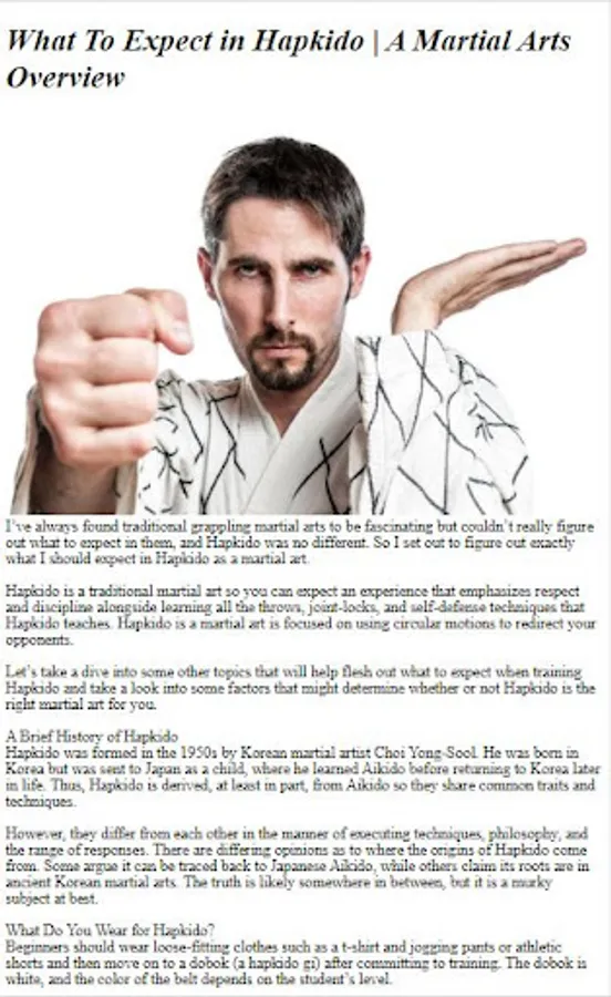 In addition to the physical aspects, our app also delves into the philosophical and mental aspects of Hapkido. You'll gain insights into discipline, focus, and cultivating a warrior mindset. We'll guide you on how to apply Hapkido principles not only in your training but also in your daily life, fostering personal growth and self-confidence.