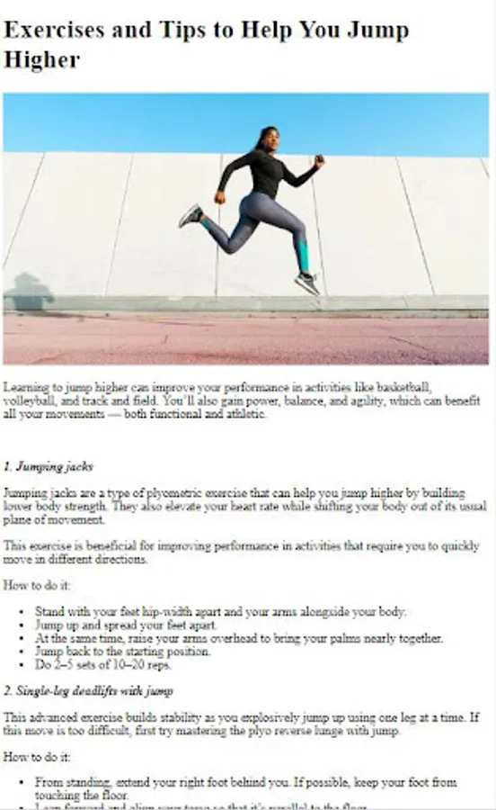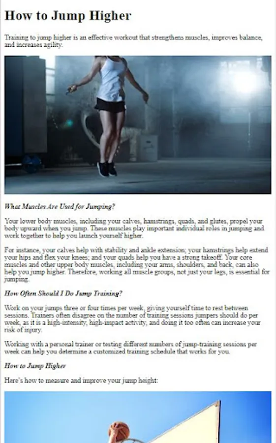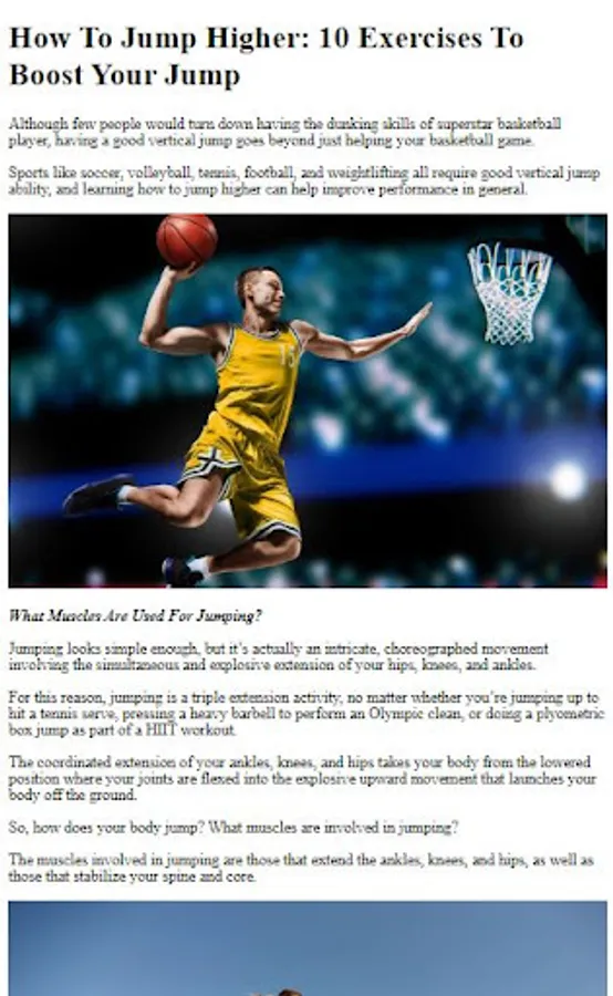 Jumping higher requires a combination of strength, power, and proper technique. With our app, you'll have access to a comprehensive collection of exercises, drills, and training techniques that specifically target the muscles and skills needed to increase your vertical leap.