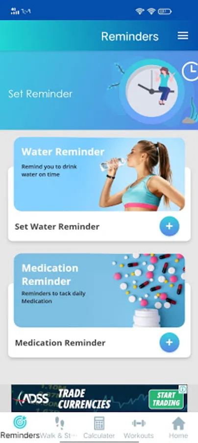 Workout Manager and Health Calculator for Fitness ( Water -medicine reminder and pedometer )