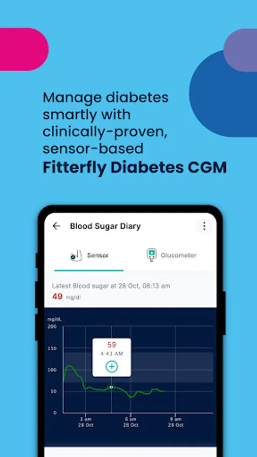 The Fitterfly Metabolic Health App is used to deliver digital therapy for prediabetes, type 1 and type 2 diabetes management, stubborn weight due to PCOS, thyroid, and other metabolic health conditions.