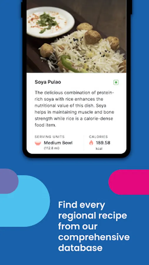 The Fitterfly: Metabolic Health App has an exhaustive list of foods mentioned. So whether it is simple dal chawal or gourmet food you can enter it and add the portion size you will get the breakup of nutrition.