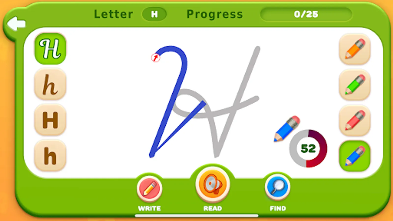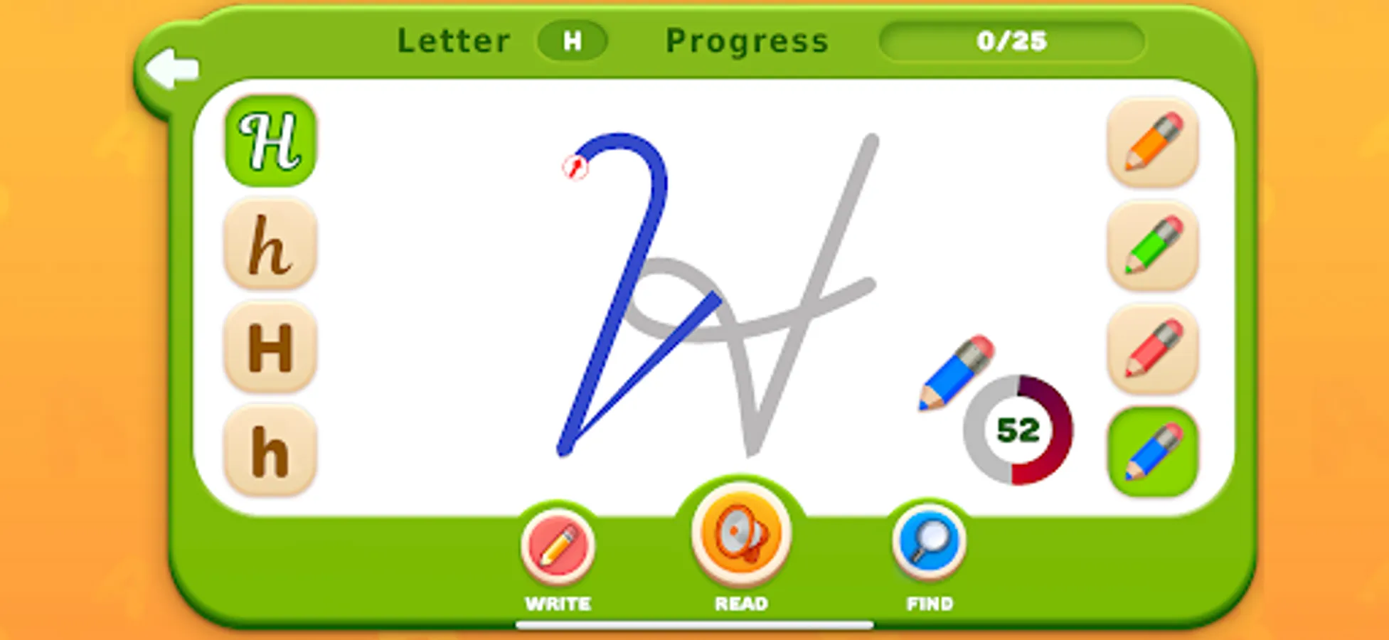 The best app on the market for learning how to read and write. A fun interactive game for kids that completely changes the way we approach studying. Get fast results with engaging graphics and straightforward structure. The game will quickly teach your kid how to read and write, help practice new words and prepare them for school!