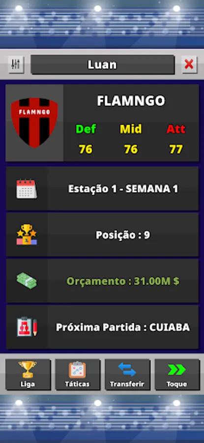 The game includes all teams from the Brazilian League of Serie A!! like Flamengo, Corinthians, Palmeiras, , São Paulo and much more!