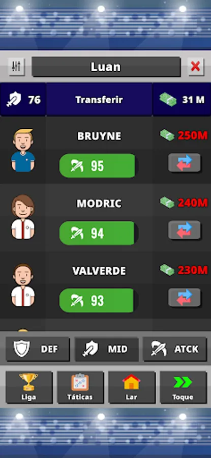 Search for players to match your team's needs. Bid against other football managers to win golden boys in the market, recruit stars with an agent or use scouts to find young hopefuls you can turn into the legends of tomorrow. Transfer players who no longer fit into your Brazilian League Series A soccer team.