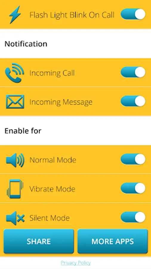 If you like the idea of a flashlight blinking on incoming call and SMS, check out this app! You will be notified about all your phone alerts when you turn flashlight on or off. Get a light alert every time someone calls you or sends you a text message. This is a great and useful feature for your mobile phones and it's only a click away from you. Flash Light Blink On Call is available for free download and you instantly get access to all the amazing app features. If you are at a party, or in a meeting, you will never miss notifications! Ringing flashlight download brings you great options! You can customize the flash alert notifications the way you want: enable alerts in Normal Mode, Vibrate Mode, or Silent Mode! Select incoming call flash notifications, or SMS light alerts, or both!