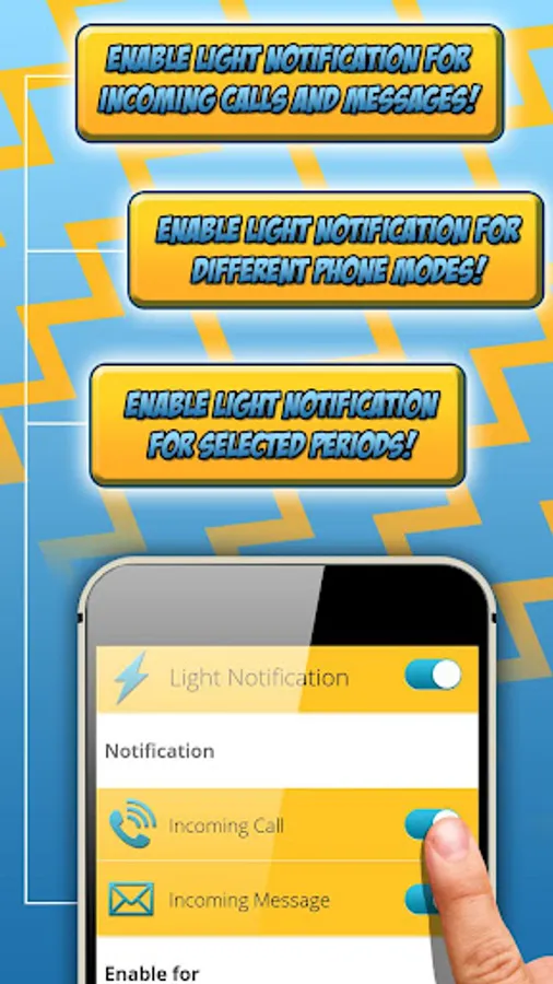 ➤ Pick just one option: flashlight alert on call or blinker indication for SMS notifications.