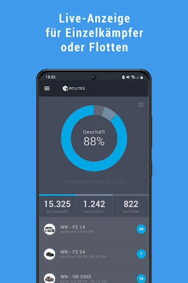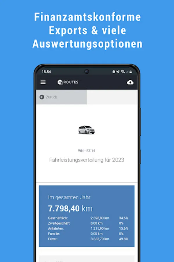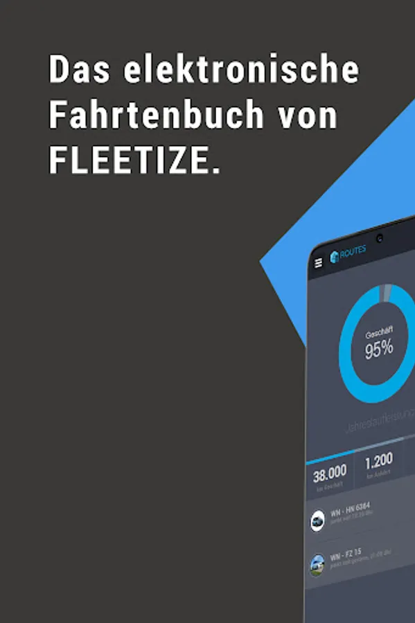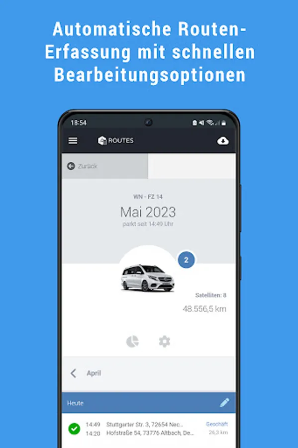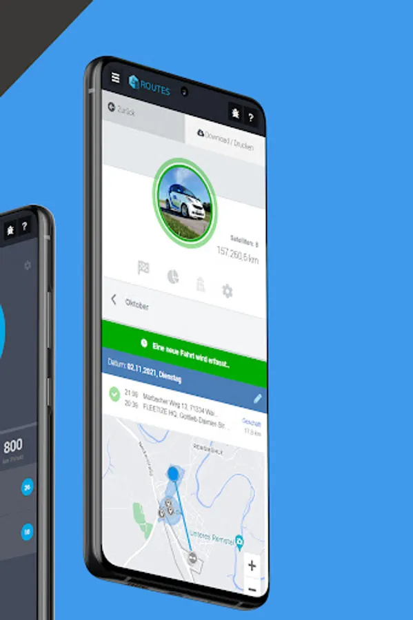 It's never been so easy to perform logbook, as with ROUTES. The electronic logbook of Fleetize is plugged into the OBD2 port on your vehicle and automatically records all relevant information for the tax office. These are transmitted reliably to your smartphone.
