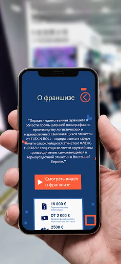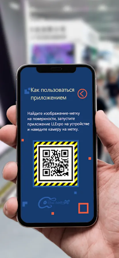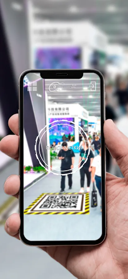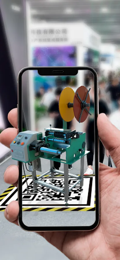 Augmented reality app FLEX-N-ROLL franchise. The tag is a picture with a QR code in the center. The user places a picture with a label on any plane. Then, installs the Franchise FLEX-N-ROLL application on your phone, launches it, points to the picture and receives a 3D model of the equipment.