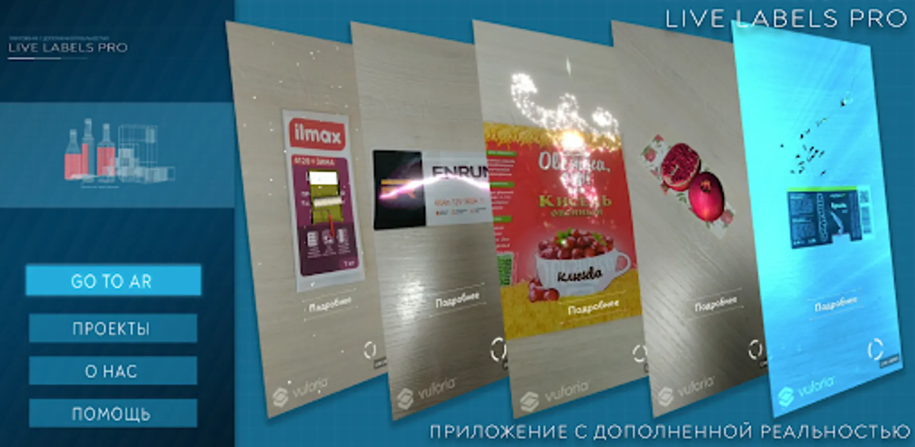 LiveLabels PRO app with augmented reality (AR). Labels are labels on goods. The manufacturer sticks a label on the product to which augmented reality is attached. The consumer installs this application on his phone, launches it, points the phone camera at the label and receives an animated augmented reality (AR) scene. The list of labels for which augmented reality works is presented in the appendix. Each scene has a link to a detailed product description. The list of augmented reality labels is regularly updated.
