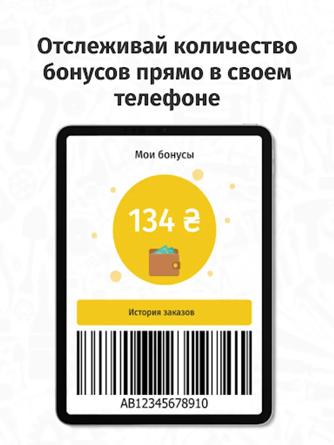 Register in the application and receive an electronic bonus card that will always be with you. To accumulate or write off bonuses, you just have to let the cashier in the store scan your barcode.